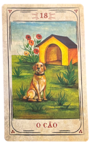 O cão é um amigo leal e habilidoso, que dedica amor incondicional, e sua fidelidade é plena. Quando essa carta aparece no destino de alguém, sempre sugere coisas boas que trarão progresso e alegria, seja por intermédio de alguém ou mesmo de alguma situação.